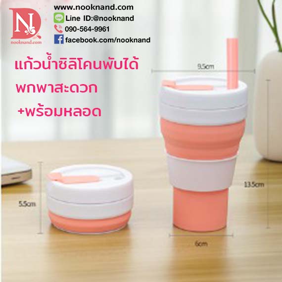 แก้วน้ำพับได้ขนาด 475 ML.16ออนซ์ แถม มีหลอดซิลิโคน